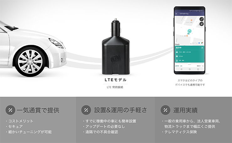 これまではコネクテッドカーを実現するには、特別な組み込み工事や改造工事が必要でした。しかし、同社は、デバイスをシガーソケットに挿すだけで済むといいます。